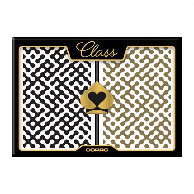 Каждый любитель карточных игр хочет получать максимальное удовольствие во время партии, в чём может помочь набор карт «Copag Bridge Jumbo Doble Deck Class Modern». Причём данный комплект подойдёт в качестве подарка близкому человеку, так как продаётся в изысканной чёрной коробке с золотым нанесением. При этом сами карты выполнены в простом дизайне, что позволяет быстро определять их «вес» и не отвлекаться на лишние элементы украшения.
