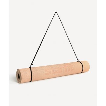 Коврик для йоги и фитнеса STARFIT FM-201, TPE, 183x61x0,4 см, персиковый/серый