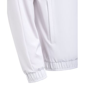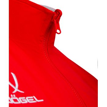 Гимновая куртка с оригинальным дизайном. Одна сторона куртки - красного цвета с фактурой рипстоп, другая сторона - белого цвета из гладкого материала с шелковистой текстурой. Обе стороны обладают влагозащитными свойствами, что обеспечивает дополнительный комфорт при ношении куртки в любую погоду.