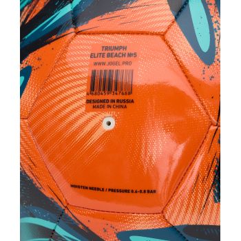 Triumph Beach Elite №5 - профессиональный мяч для пляжного футбола-уникальная товар в ассортиментом ряде футбольных мячей JOGEL. Модель разработана непосредственно для игры в пляжный футбол, учитывает все особенности и нюансы данного спортивного направления. Красочный дизайн с сочетанием оранжевого и синего цветов помогает хорошо различать мяч на песке и делает игру более зрелищной.