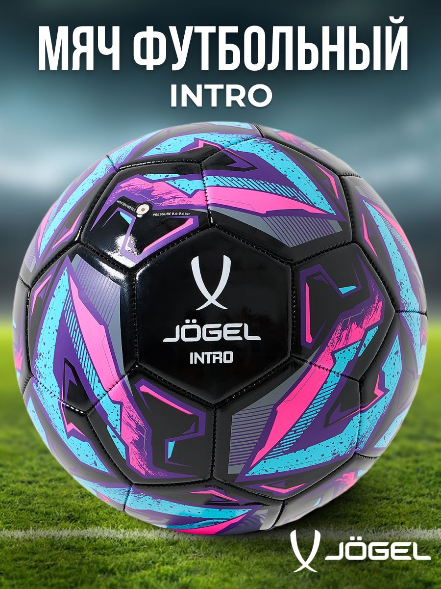 Мяч футбольный Jögel Intro, 5 размер, чёрный/голубой, любительский