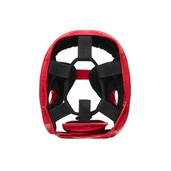 Шлем имеет анатомическую форму, которая обеспечивает удобную посадку и максимальный обзор, что особенно важно в динамичных поединках. Регулировка по обхвату головы осуществляется с помощью шнурка в верхней части и липучки, что гарантирует плотное прилегание и стабильность во время движения.