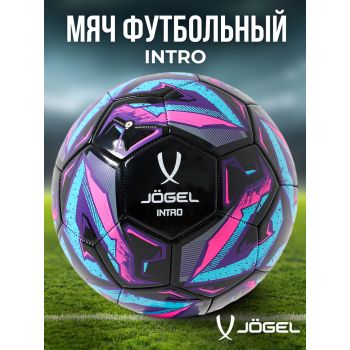 Мяч футбольный Jögel Intro, 5 размер, чёрный/голубой, любительский