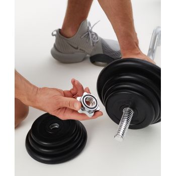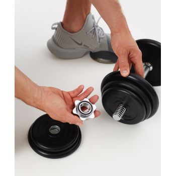 Замки для грифа BB-108 от STARFIT - это удобный аксессуар для тренировок. Такой замок для штанги позволяет легко и быстро собирать и разбирать снаряд. Комплект состоит из 2 штук. Зажим для грифа помогает плотно закрепить диски благодаря специальной прорезиненной вставке. Спортинвентарь прослужит вам долго: зажим для штанги изготовлен из металла, этот качественный материал сводит к минимуму риск срыва резьбы.