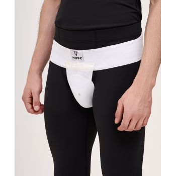 Защита паха PROTEC удобна в использовании. Широкая резинка обеспечивает плотное прилегание и надежно фиксируется на теле благодаря поддерживающим эластичным лентам. Ракушка для единоборств изготовлена из пластика повышенной жесткости, это позволяет обеспечить уверенную защиту данной области даже во время тесного контакта с соперником. В ракушке предусмотрены вентиляционные отверстия для улучшенного воздухообмена. Края пластикового вкладыша покрыты силиконом, чтобы защитить тело от травм во время движения. Ракушка помещена в мешочек из дышащего сетчатого материала. Изделие не требует сложного ухода – прочный пластиковый элемент легко вытащить перед стиркой.