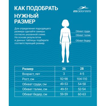 Модель представлена в двух размерах: для детей 2–3 лет (рост 92–98 см, вес 15–19 кг) и 3–6 лет (рост 98–116 см, вес 19–30 кг).